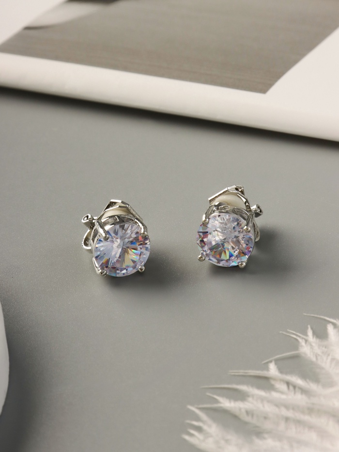 Клипсы для ушей QF «Вечеринка», крупные кристаллы, белая в серебре