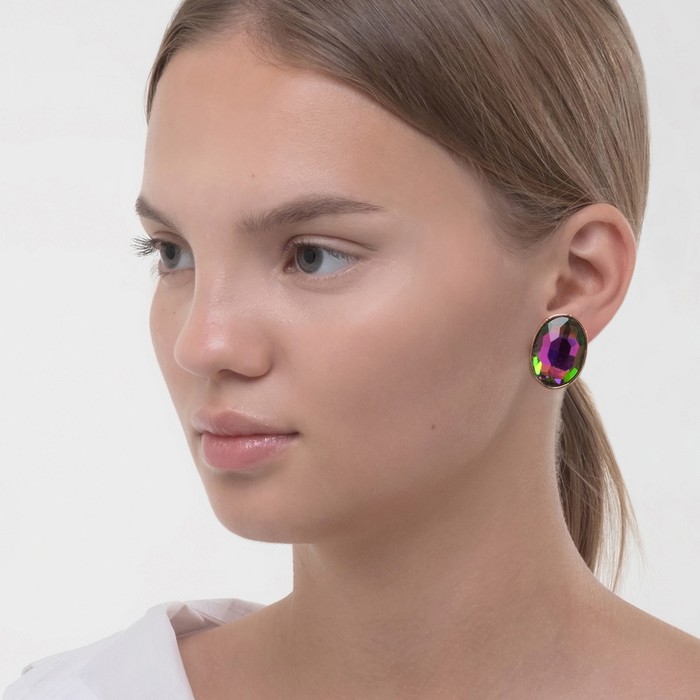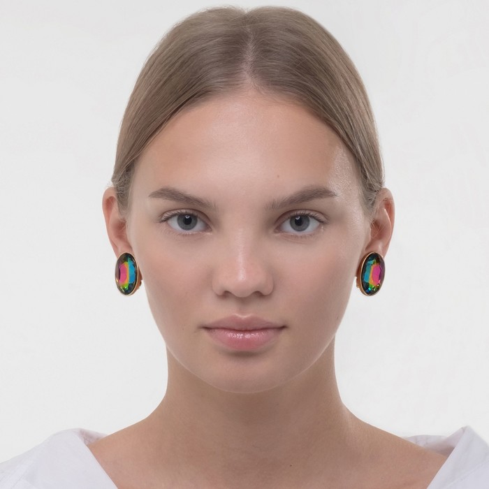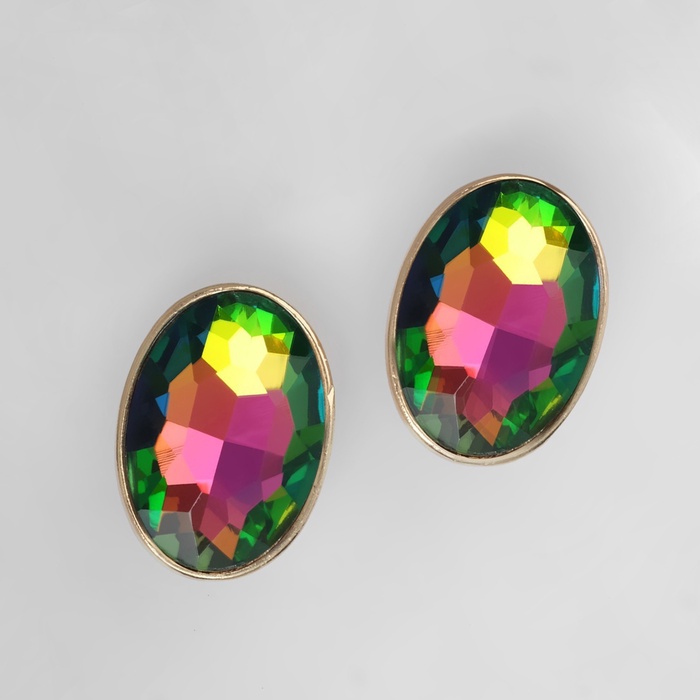 Клипсы для ушей QF «Вечеринка», овалы, цвет бензиновый в золоте — Характеристики