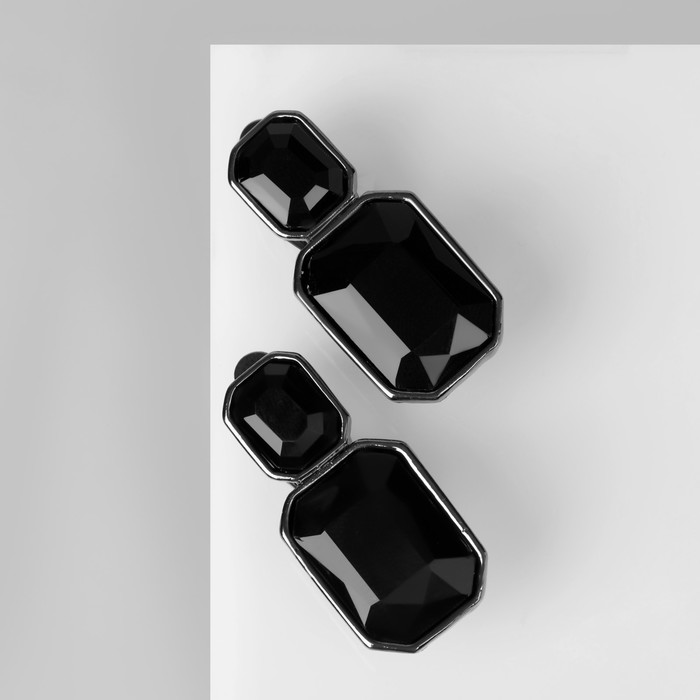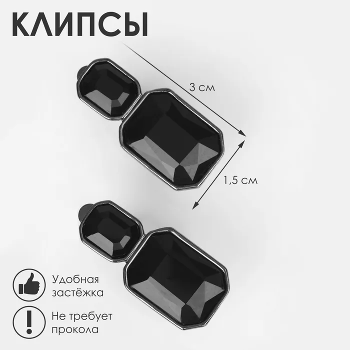 Клипсы для ушей QF «Вечеринка», ромбы, цвет чёрный в сером металле — Характеристики