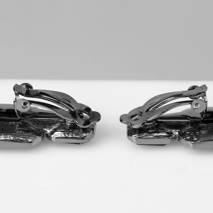 Клипсы для ушей QF «Вечеринка», ромбы, цвет чёрный в сером металле