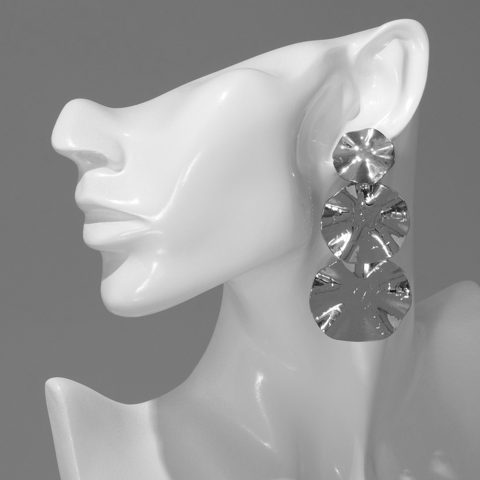 Клипсы для ушей висячие QF «Лёгкость», трио, цвет серебро