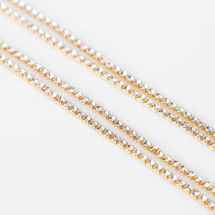 Клипсы для ушей висячие со стразами QF «Лёд», классика 2 ряда, цвет белый в золоте — Характеристики