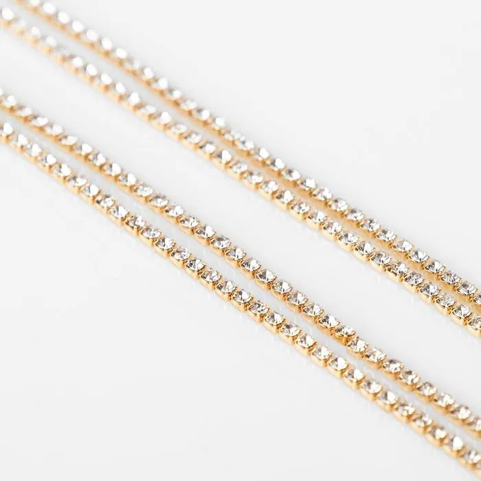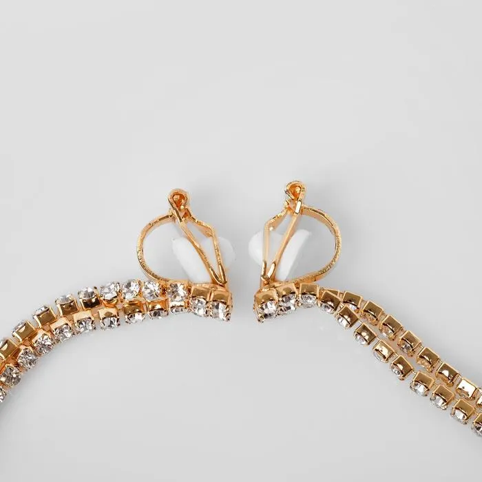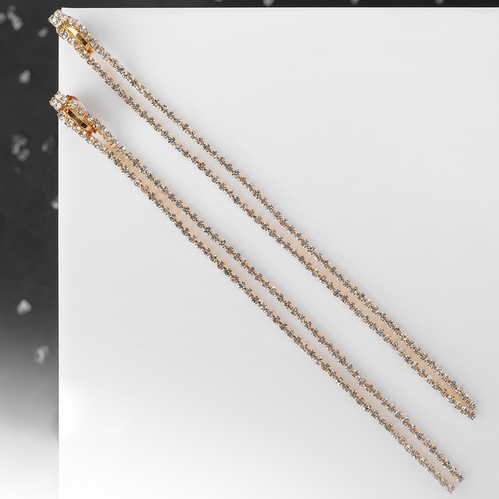 Клипсы для ушей висячие со стразами QF «Лёд», классика 2 ряда, цвет белый в золоте