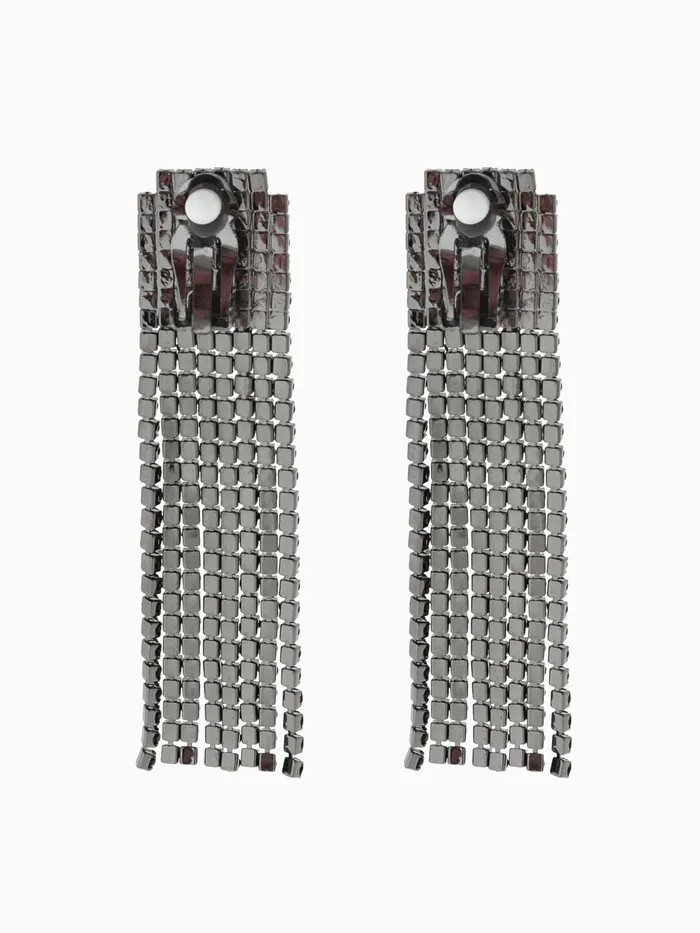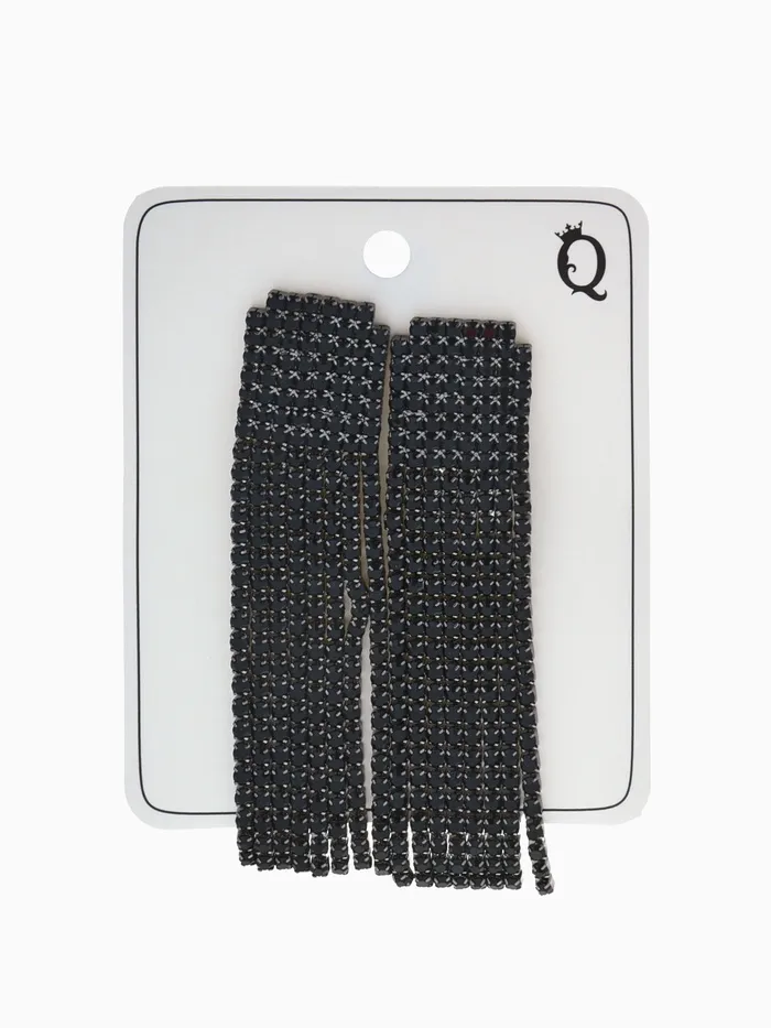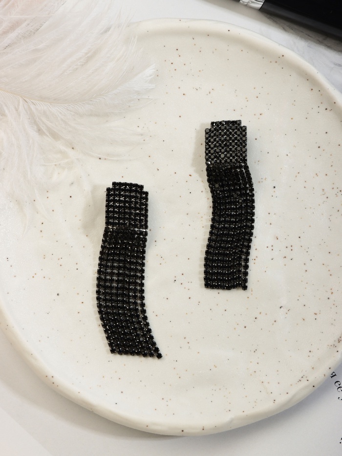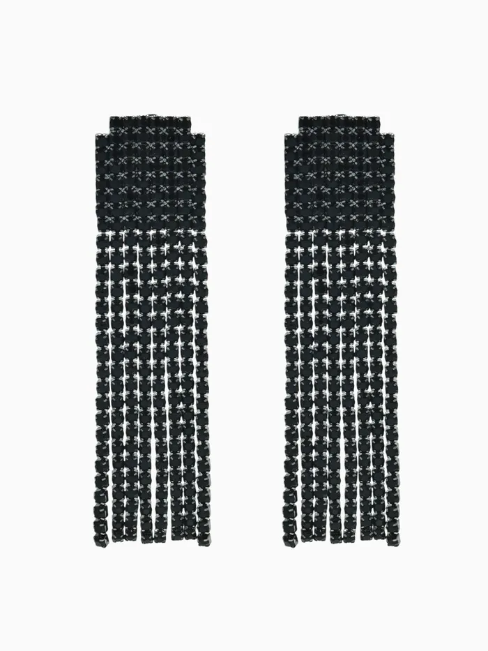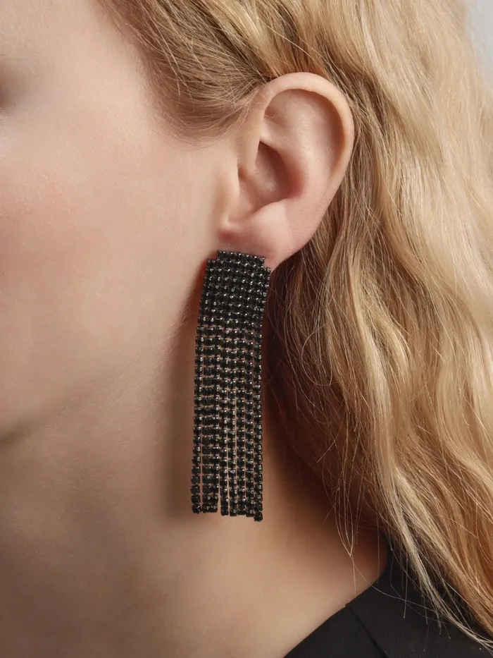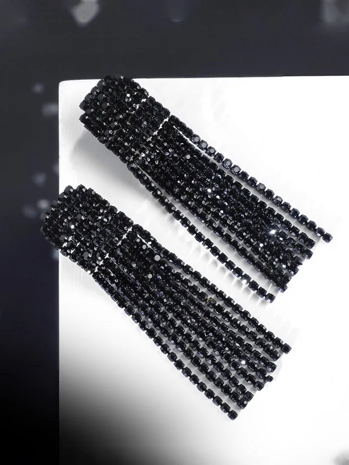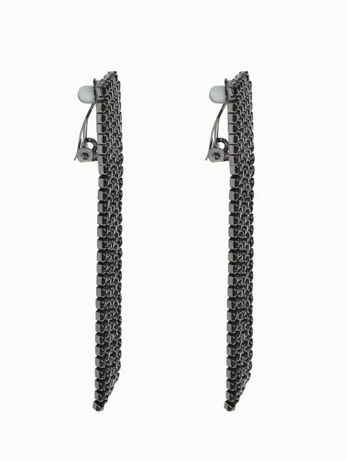 Клипсы для ушей висячие со стразами QF «Вечеринка», квадрат, цвет чёрный