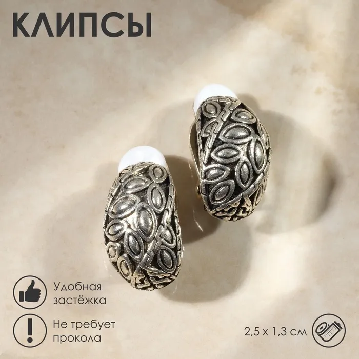 Клипсы «Грейс» лепестки, цвет чернёное серебро — Характеристики