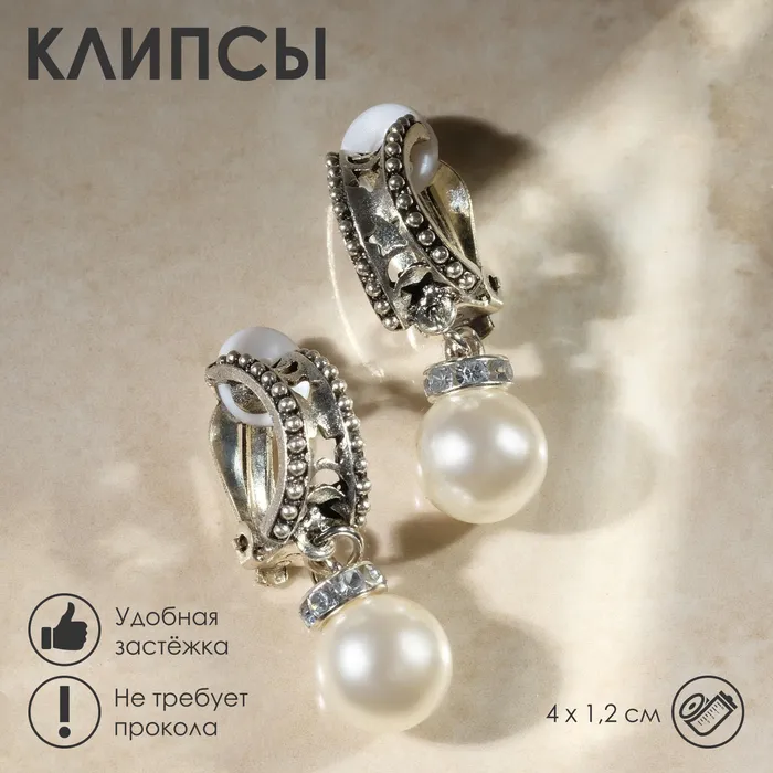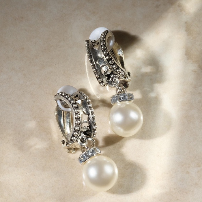 Клипсы «Грейс» звёзды с бусинами, цвет белый в чернёном серебре — Характеристики