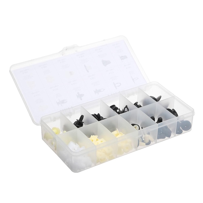 Клипсы и пистоны крепежные, 12 видов, набор 146 шт.