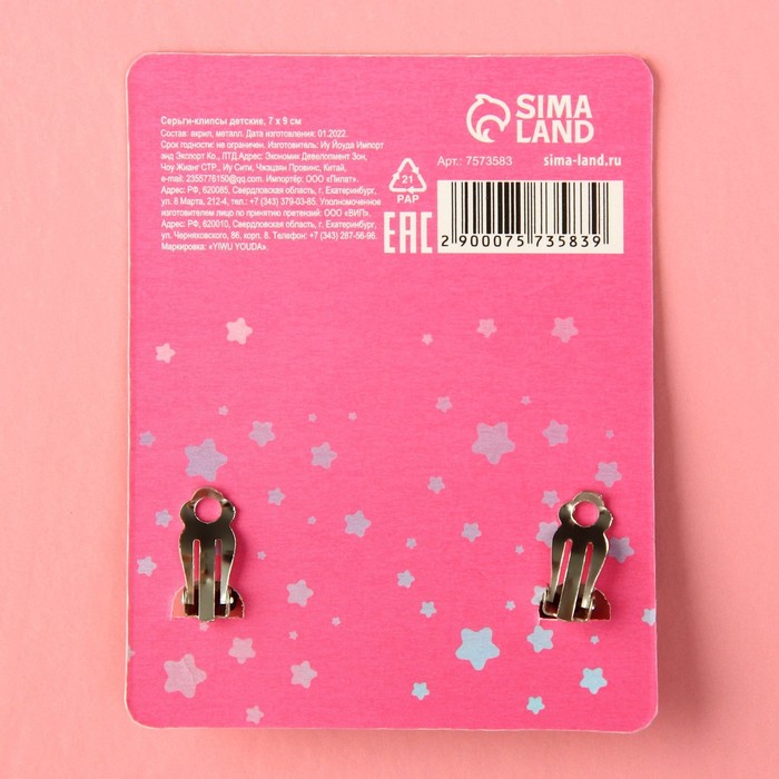 Детские серьги-клипсы для непроколотых ушей-отличный подарок надень рождения или любой другой праздник.