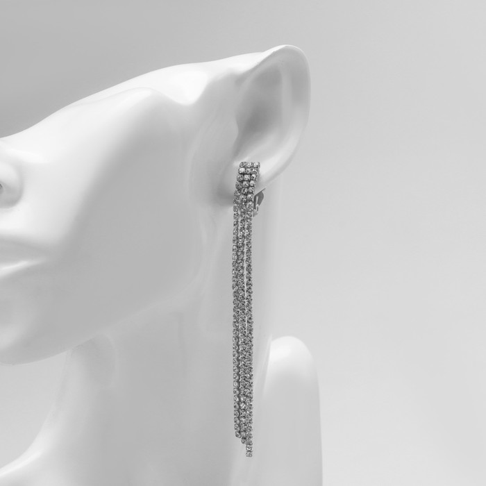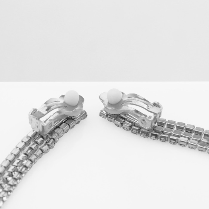 Погрузитесь в мир утончённой элегантности с клипсами «Лёд», которые станут изюминкой вашего образа! Эти великолепные украшения в белом цвете с серебристой фурнитурой имеют длину 10 см и созданы для того, чтобы подчеркнуть вашу индивидуальность и стиль. Их тройная сплошная форма придаёт им особую выразительность, а вставки из страз добавляют блеска и шикарного сияния.