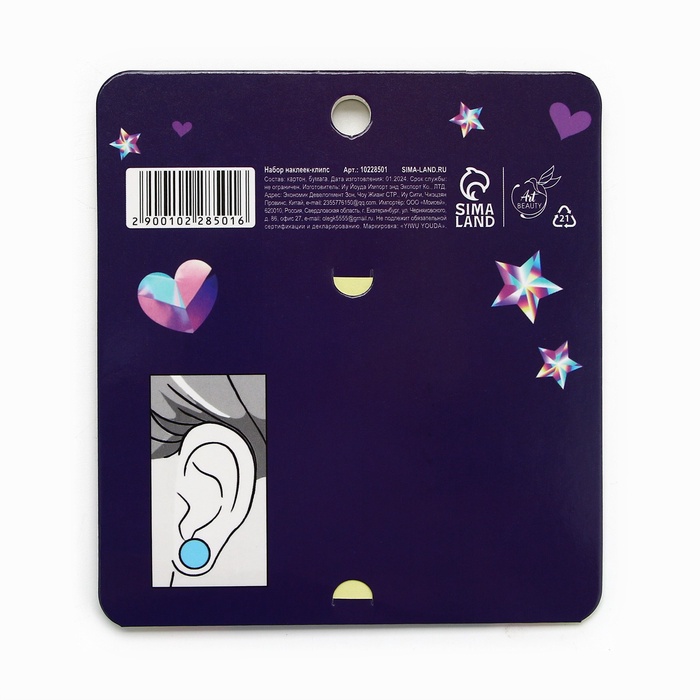 Серьги клипсы детские Выбражулька «Блёстка», миксы