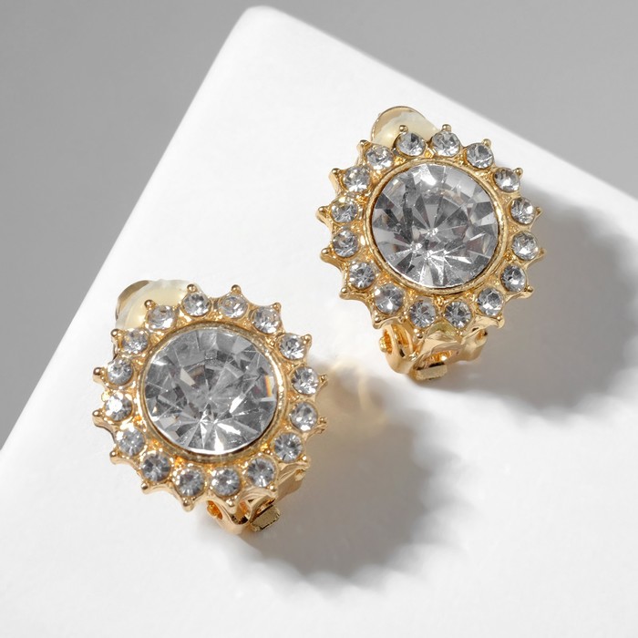 Клипсы «Подсолнух», цвет белый в золоте — Характеристики