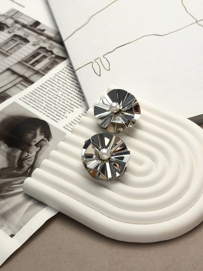 Клипсы «Тренд» объёмный цветок, цвет серебро — Характеристики