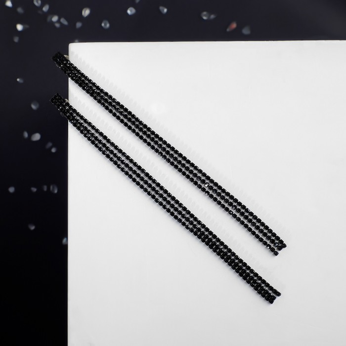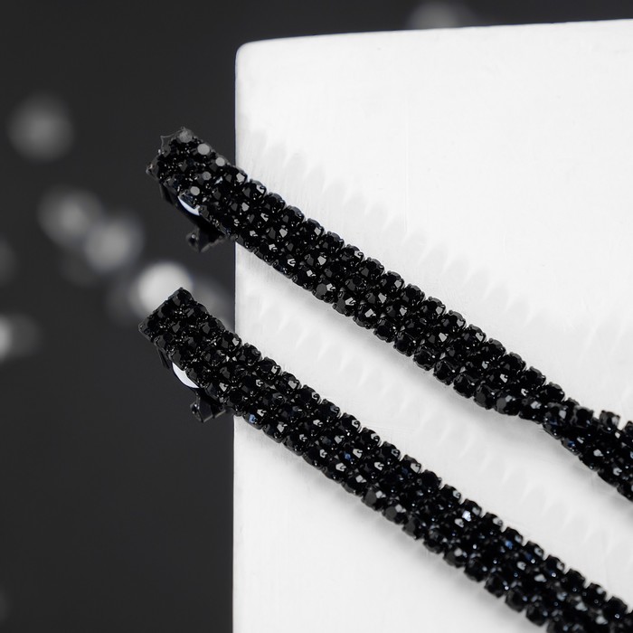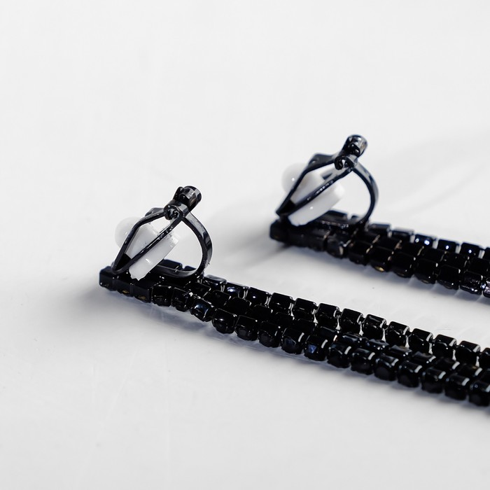 Клипсы висячие со стразами «Лёд» классика, цвет чёрный в чёрном металле