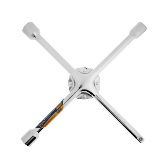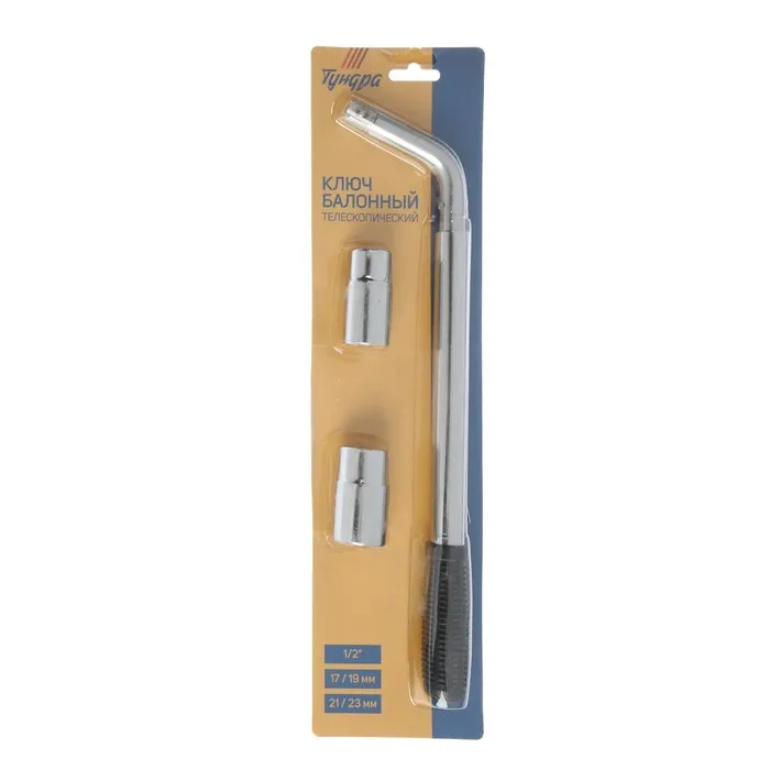 Балонный ключ ТУНДРА предназначен для монтажа и демонтажа резьбовых соединений при замене автомобильных колёс. Выдвижная конструкция ручки позволяет оказать большее усилие при откручивании болта или гайки, а наличие двух сменных насадок делает инструмент универсальным.