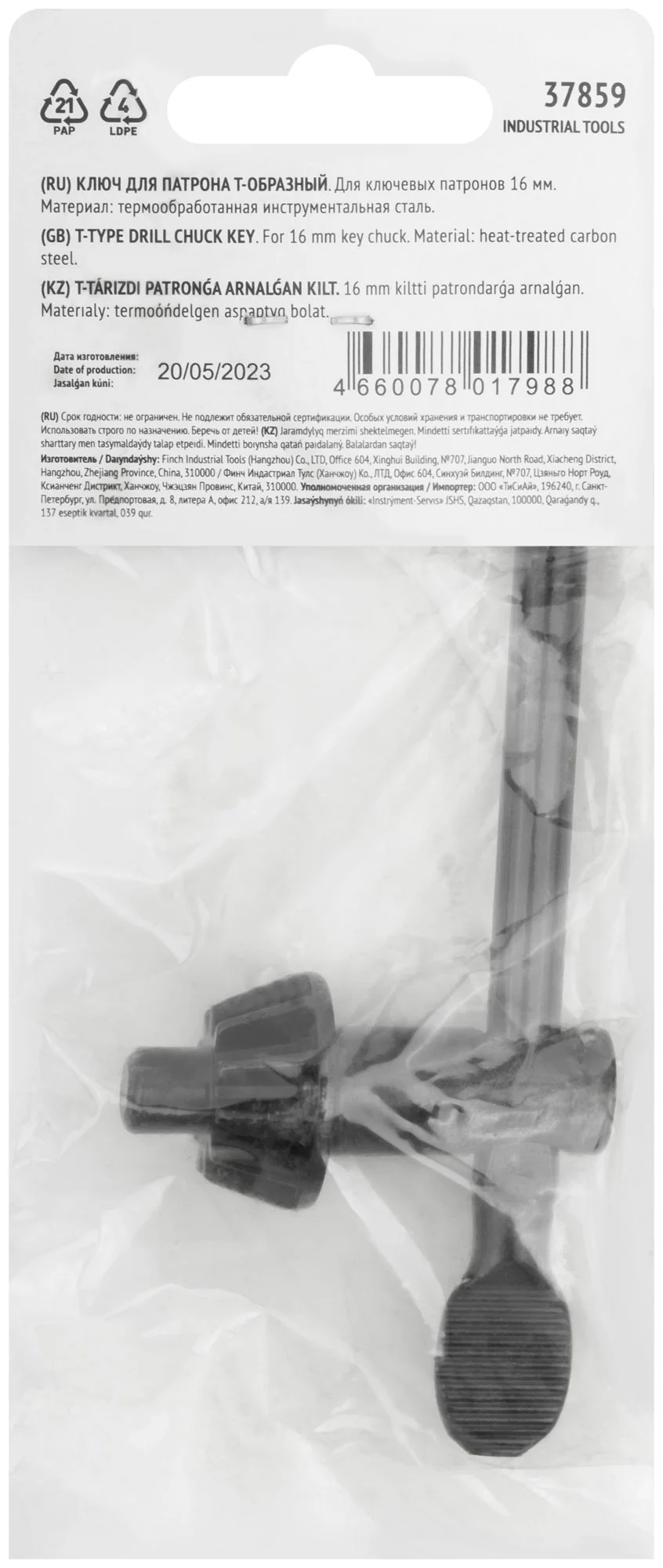Ключ для патрона T-образный 16 мм от FIT — это незаменимый инструмент при работе с дрелями и сверлильными станками, где требуется надежная фиксация сверл. Он идеально подходит для обеспечения стабильной работы и предотвращения прокручивания сверла в патроне.
