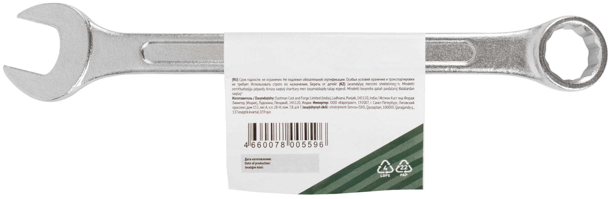 Ключ оснащён комбинированной конструкцией, которая включает в себя рожковый и накидной профиль, что позволяет использовать его для различных типов крепежа. Это делает его универсальным инструментом, который незаменим в вашем наборе.