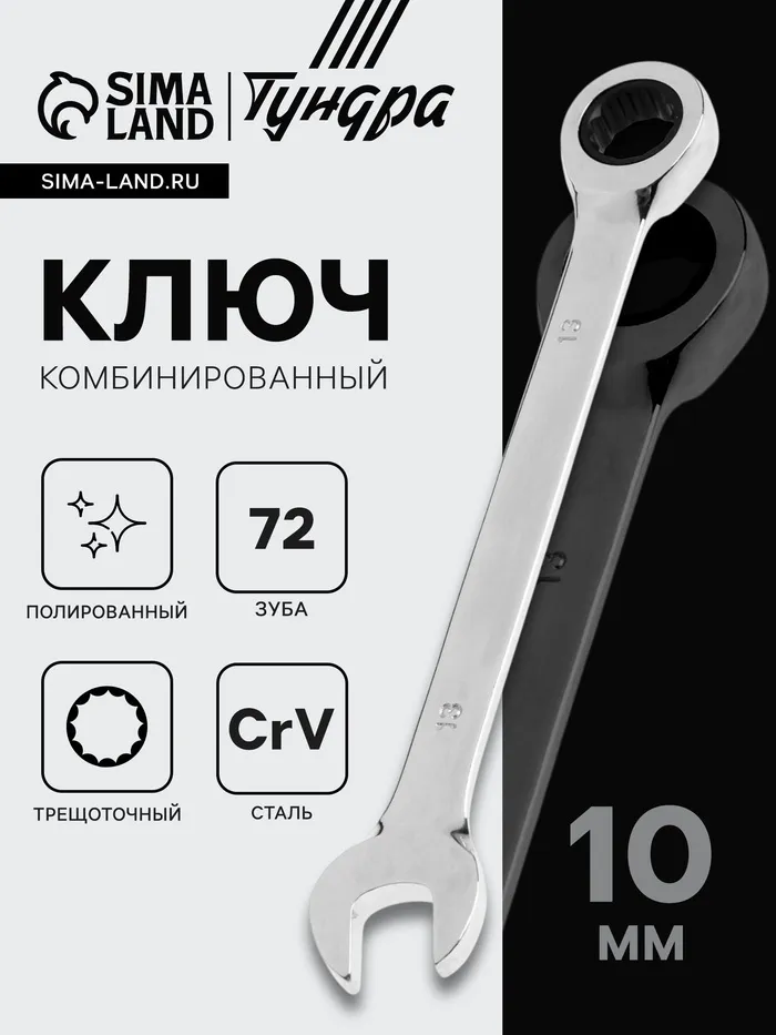 Ключ комбинированный трещоточный ТУНДРА, CrV, полированный, 72 зуба, 12 мм — Характеристики