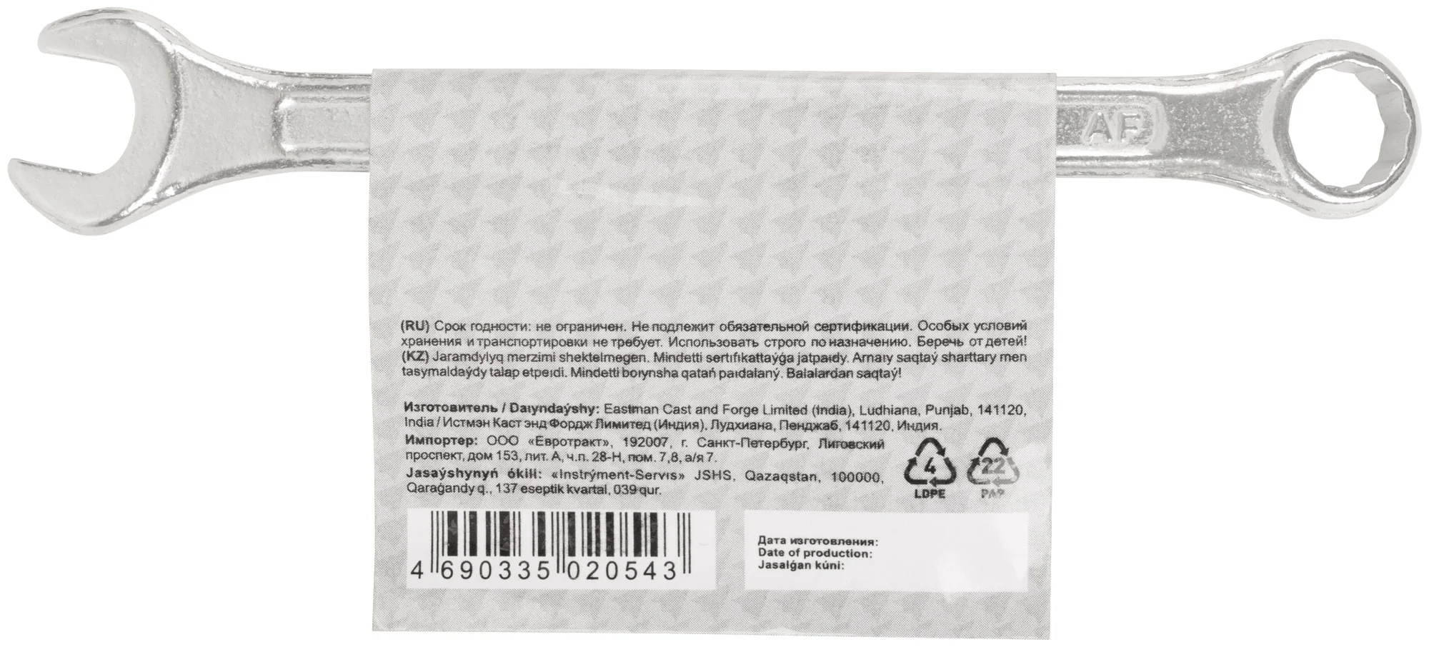 Комбинированный ключ обладает удобной длиной в 140 мм, позволяющей работать в труднодоступных местах. Компактные размеры и легкий вес делают его удобным для хранения и переноски.