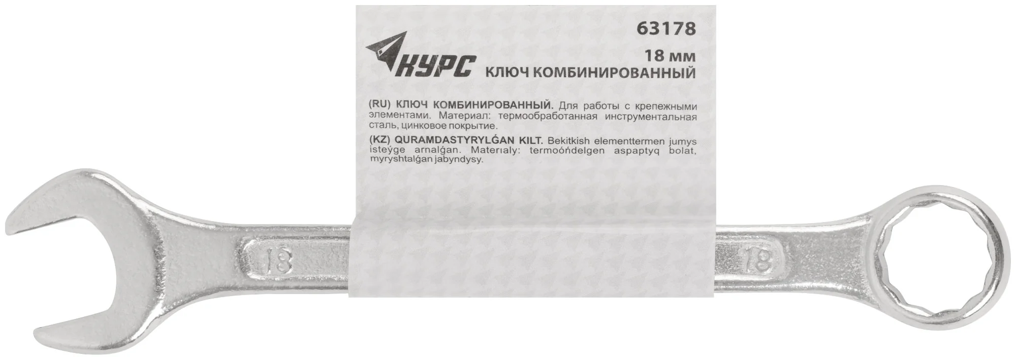 Выберите комбинированный ключ КУРС, чтобы обеспечить надежность и удобство в работе. Код товара: 63178.