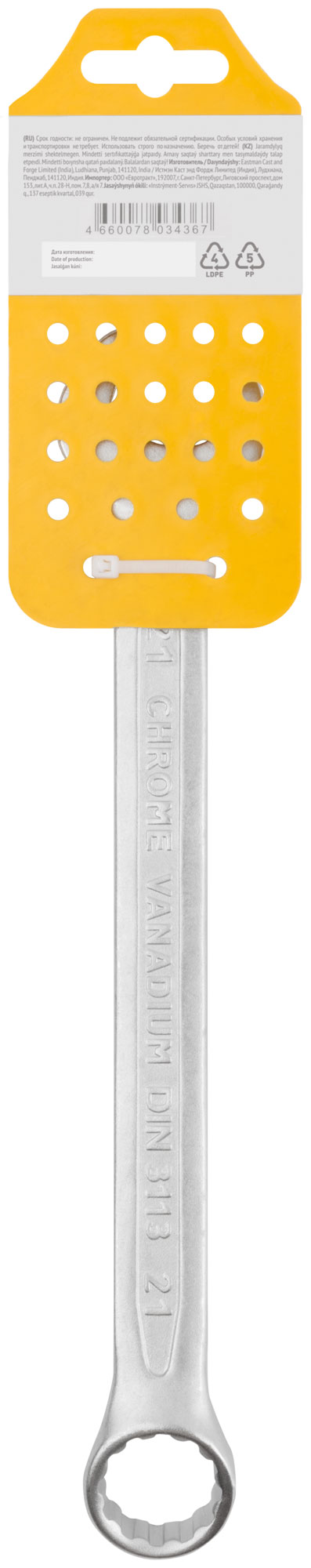 Усиленный комбинированный ключ 21 мм CrV с холодной штамповкой