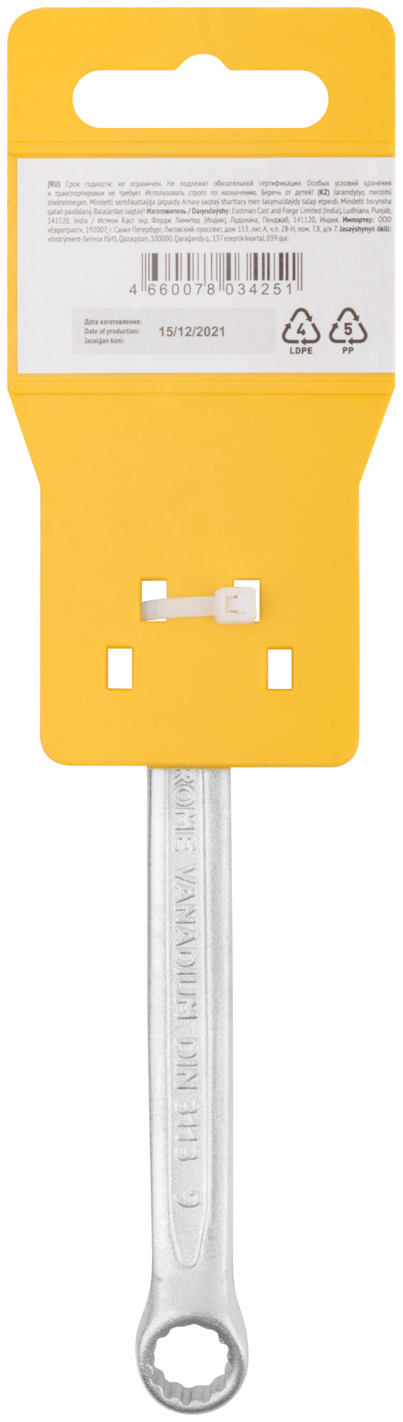 Ключ комбинированный усиленный "Гранд", CrV, холодный штамп 9 мм