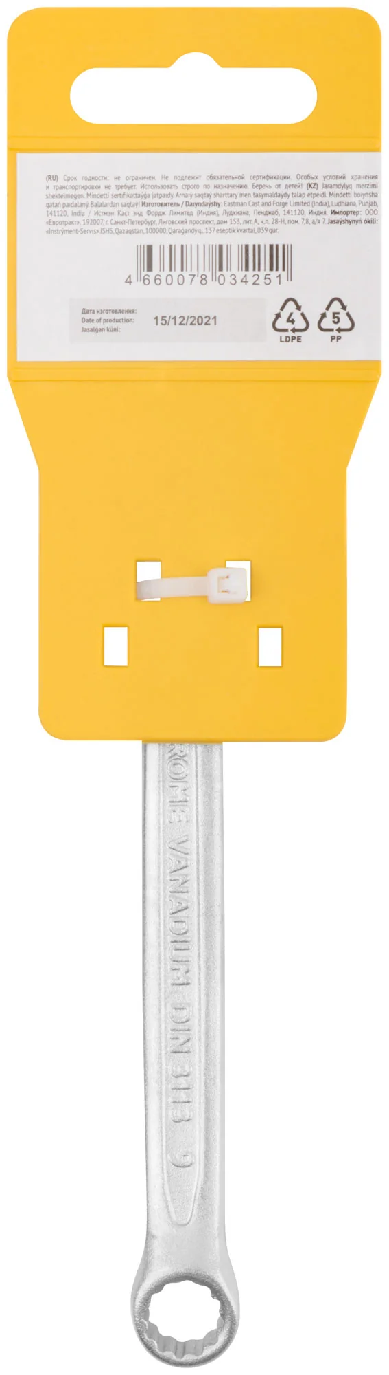 Изготовленный из хром-ванадиевой стали, этот ключ прошел холодную штамповку, что обеспечивает его высокую прочность и устойчивость к деформации. Матовое хромированное покрытие защищает инструмент от коррозии, увеличивая срок его службы. Длина ключа составляет 130 мм, что делает его удобным для работы в труднодоступных местах.