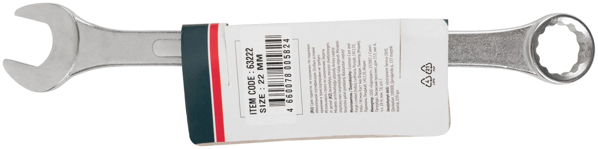 Этот комбинированный ключ от FIT идеально подходит для выполнения сложных монтажных работ. Он позволяет надежно и быстро работать с крепежом на 22 мм, что особенно полезно в условиях ограниченного пространства или при необходимости применения значительных усилий.