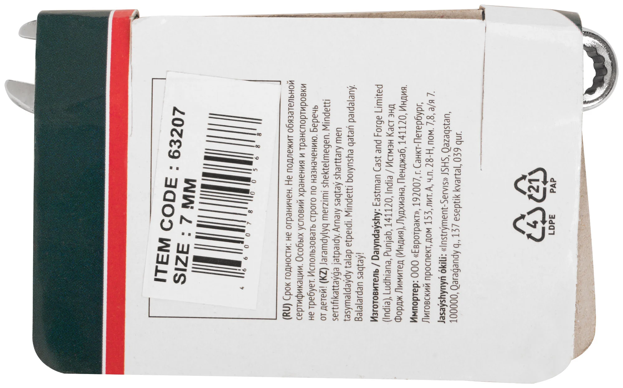 Выберите комбинированный ключ "Модерн" 7 мм с артикулом 63207, чтобы обеспечить надежное и долговечное крепление в любых условиях.