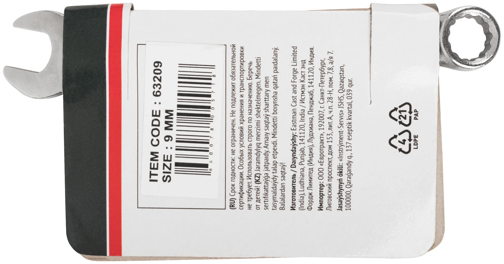 Ключ изготовлен из штампованной инструментальной стали и имеет хромированное покрытие, что обеспечивает его долговечность и защиту от коррозии. Компактные размеры 115x50x10 мм делают его удобным в использовании даже в ограниченных пространствах.