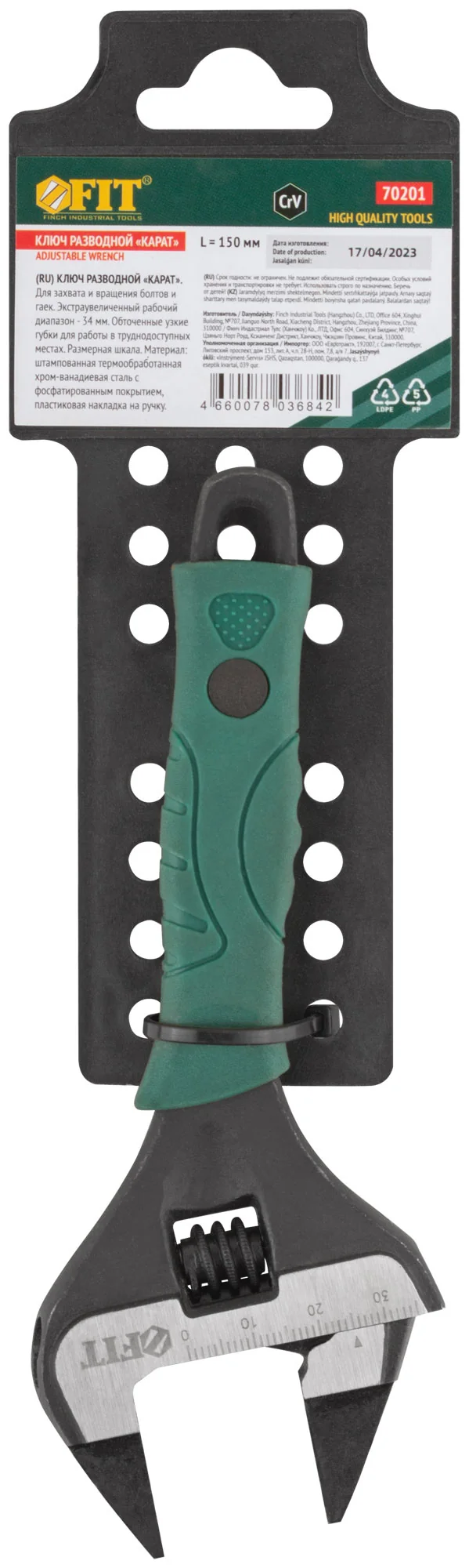 Выберите ключ разводной FIT 70201, чтобы обеспечить себе надежный и универсальный инструмент для любых монтажных и ремонтных задач.