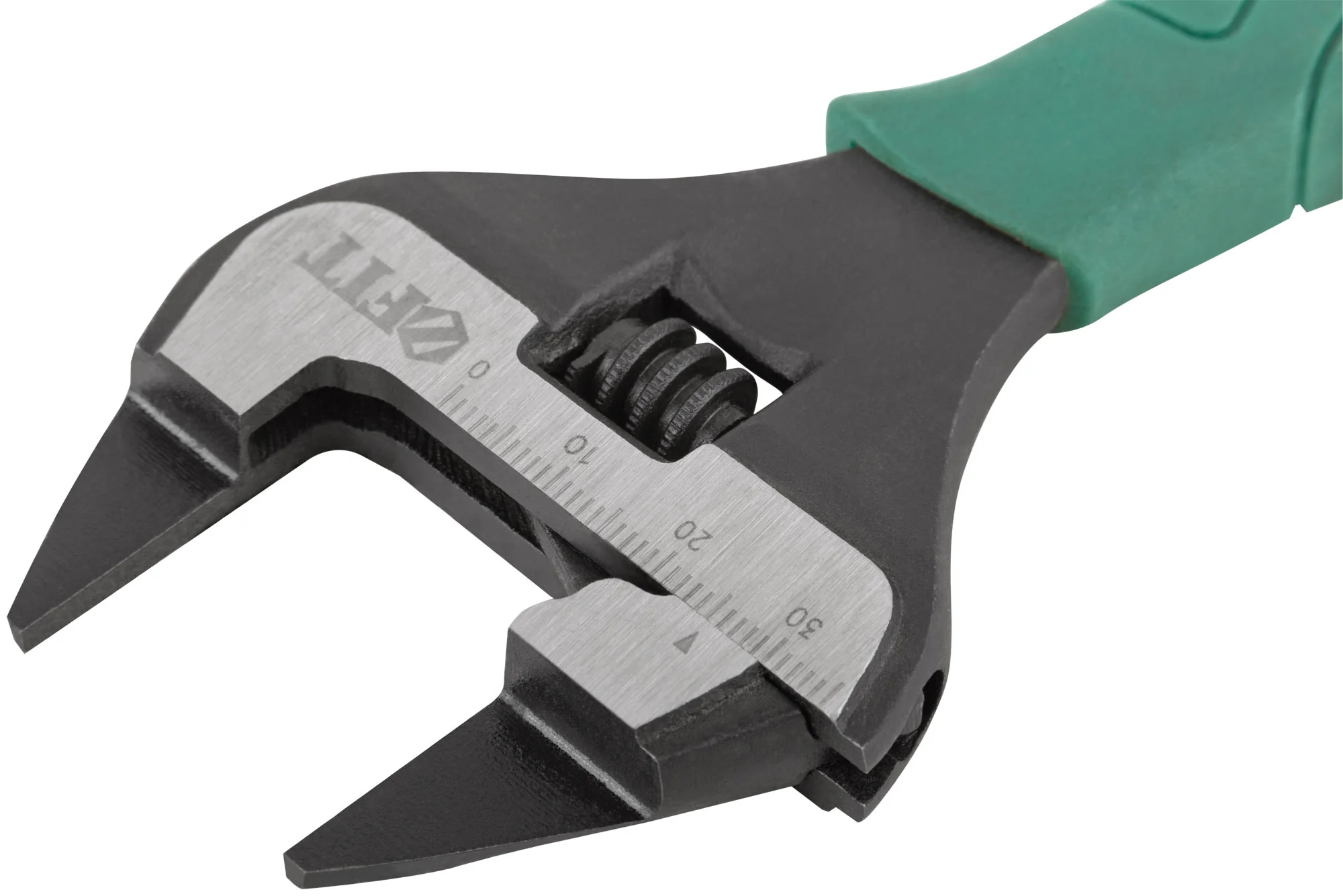 Ключ разводной FIT 70201 — идеальный инструмент для работы в труднодоступных местах благодаря узким обточенным губкам. Незаменим для сантехнических работ и в условиях ограниченного пространства, где требуется точная регулировка.