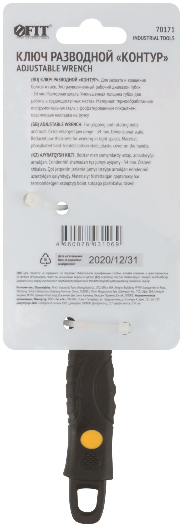 Выберите ключ разводной "Контур" FIT 70171, чтобы обеспечить себе надёжный инструмент для самых сложных задач.