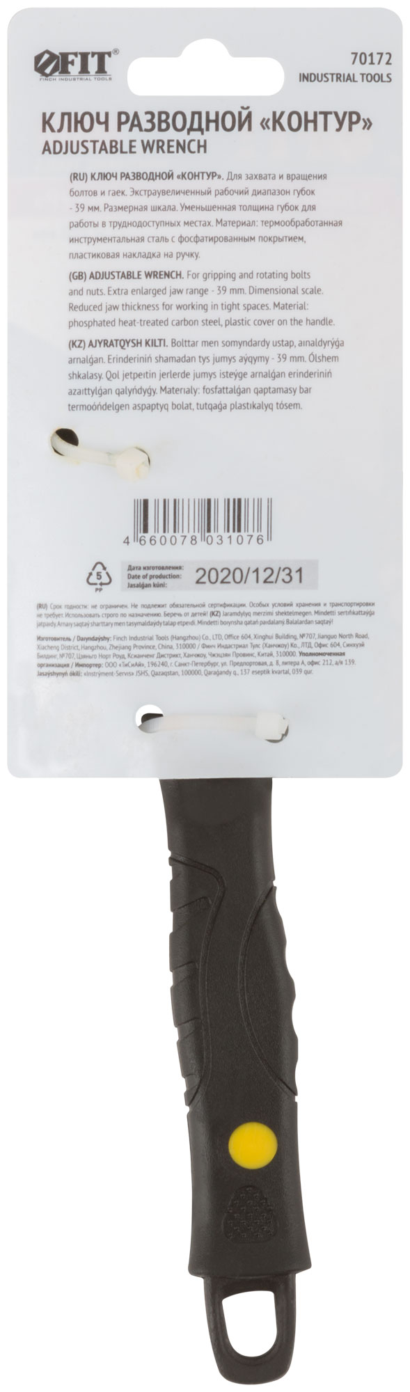 Выберите ключ разводной FIT 70172, чтобы повысить эффективность и удобство ваших монтажных работ.