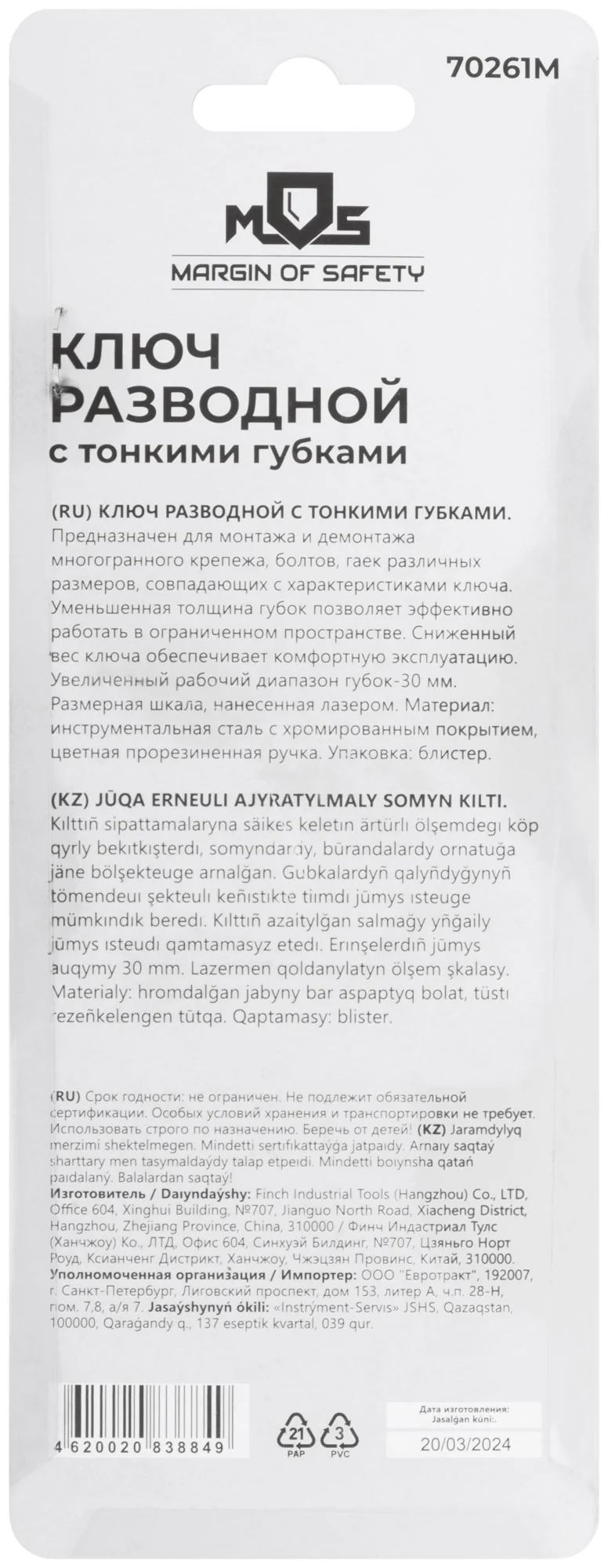 Выберите ключ MOS 135 мм с тонкими губками, чтобы обеспечить себе комфорт и эффективность при работе в самых сложных условиях.