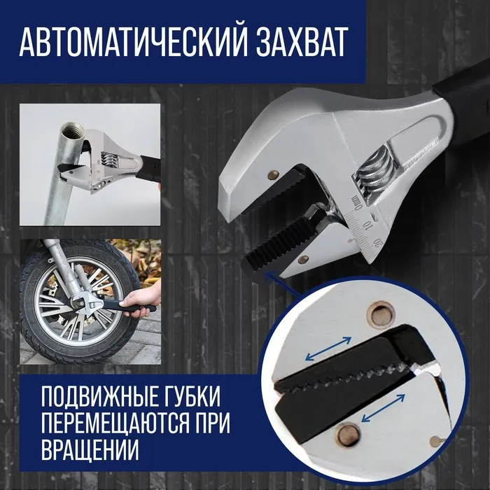 Практичность и надежность: Разводной ключ с автоматическим захватом обеспечивает высокую точность и удобство при работе с гайками и болтами. Он подходит для профессионалов и любителей, обеспечивая надежное выполнение задач. С этим инструментом вы сможете быстро и легко справляться с различными задачами. Разводной ключ с автоматическим захватом – это надежный выбор для тех, кто ценит качество и удобство.