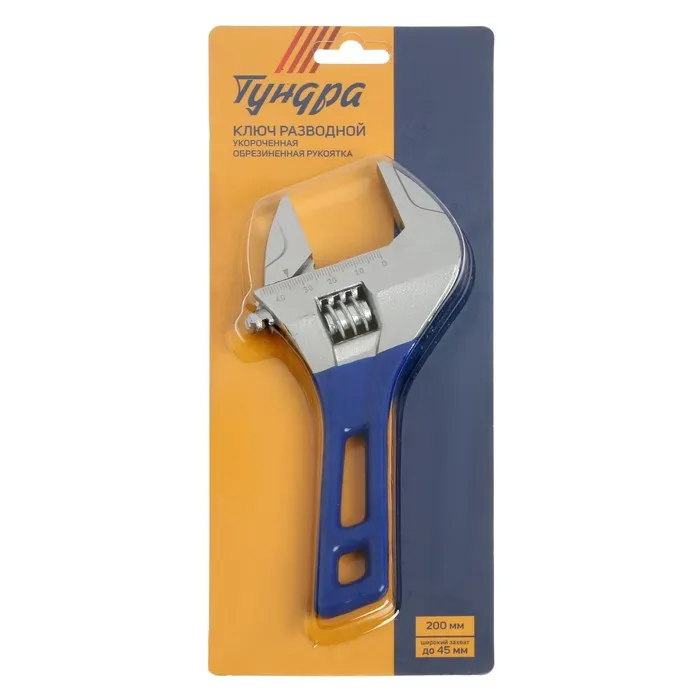 Ключ разводной ТУНДРА, укороченная обрезиненная рукоятка, широкий захват до 45 мм, 200 мм — Характеристики