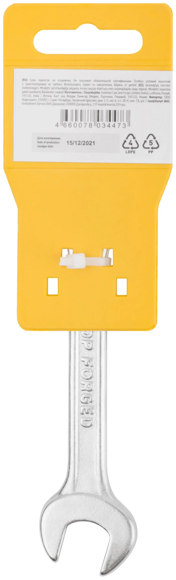 Ключ упакован в пластиковый подвес, что упрощает его хранение и демонстрацию на стенде в магазине. Хромированное покрытие не только защищает от коррозии, но и улучшает внешний вид инструмента.