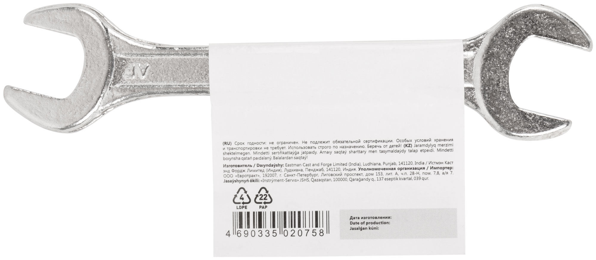 Рожковый ключ 17х19 мм с хромированным покрытием для надежного крепежа