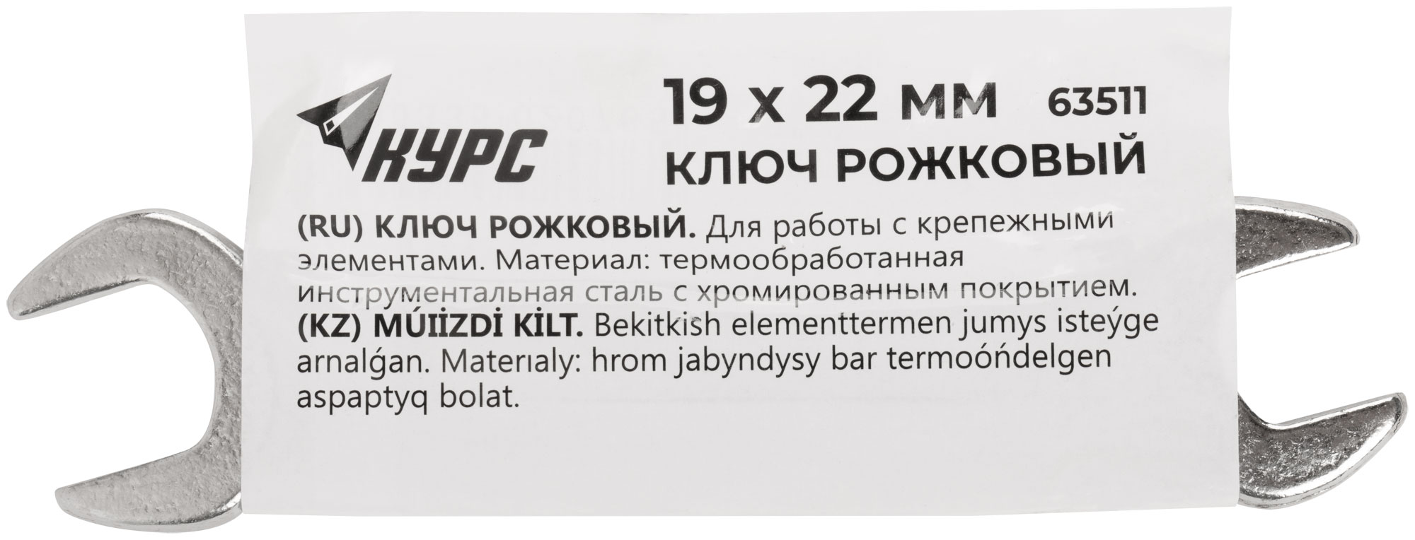 Выберите ключ рожковый 19х22 мм КУРС 63511, чтобы обеспечить надёжный и эффективный процесс работы с крепежом.