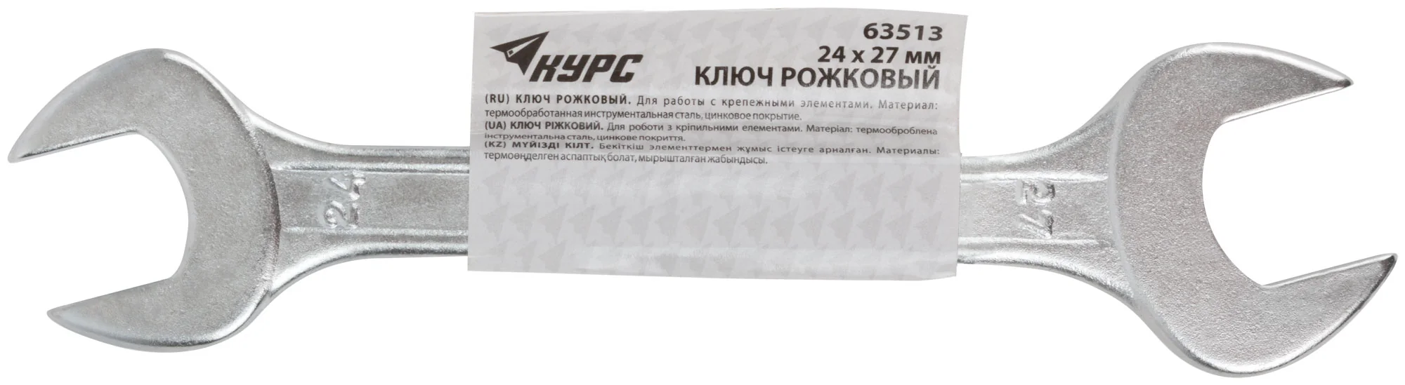 Ключ рожковый 24х27 мм от бренда КУРС станет незаменимым инструментом в арсенале мастера. Используйте его для работы с крепежом различных размеров, обеспечивая надежное и точное затягивание или ослабление гаек и болтов.