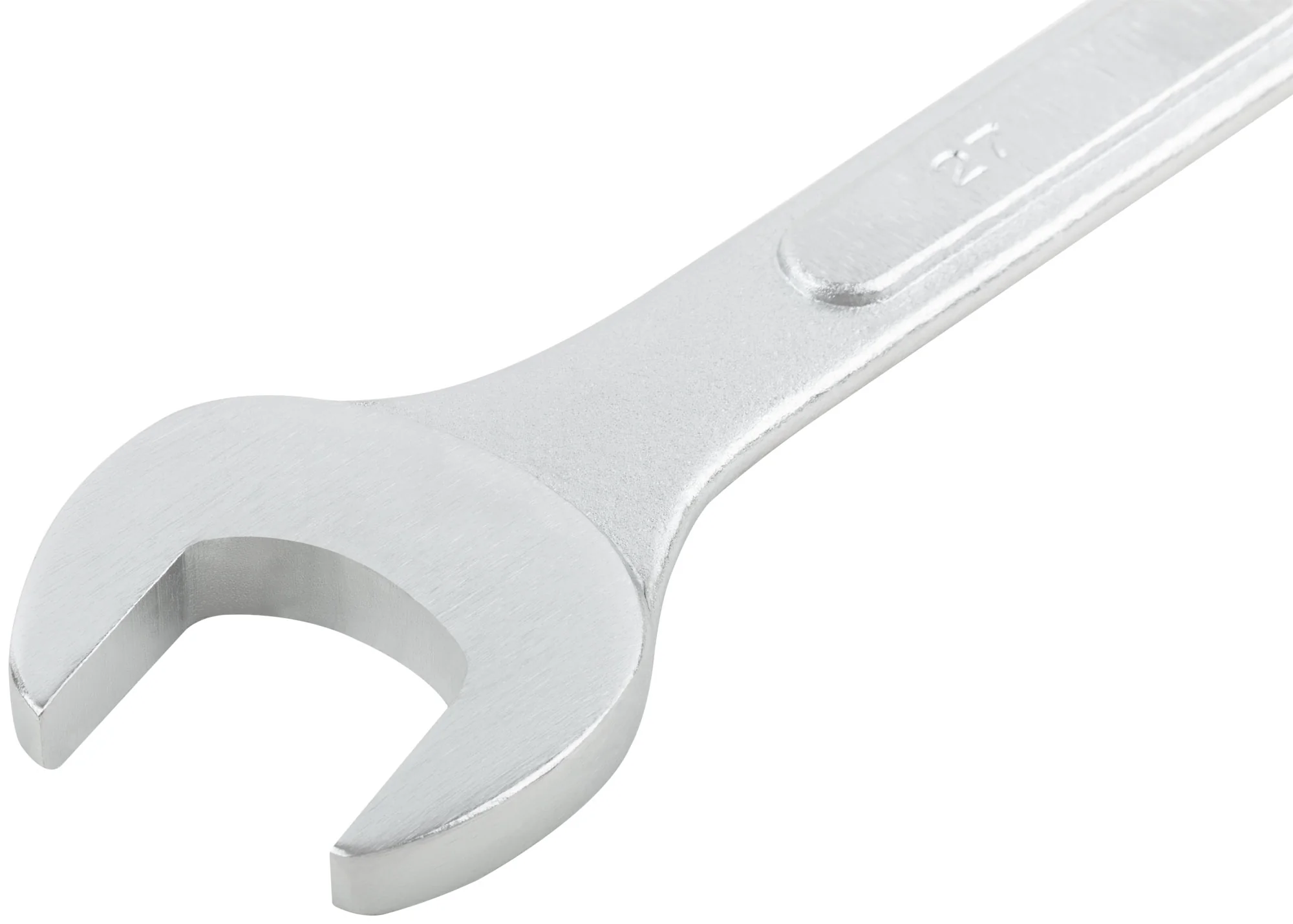 Ключ изготовлен из штампованной инструментальной стали, прошедшей термообработку, что придает ему дополнительную прочность и долговечность. Хромированное покрытие защищает инструмент от коррозии, увеличивая срок его службы даже в условиях повышенной влажности.