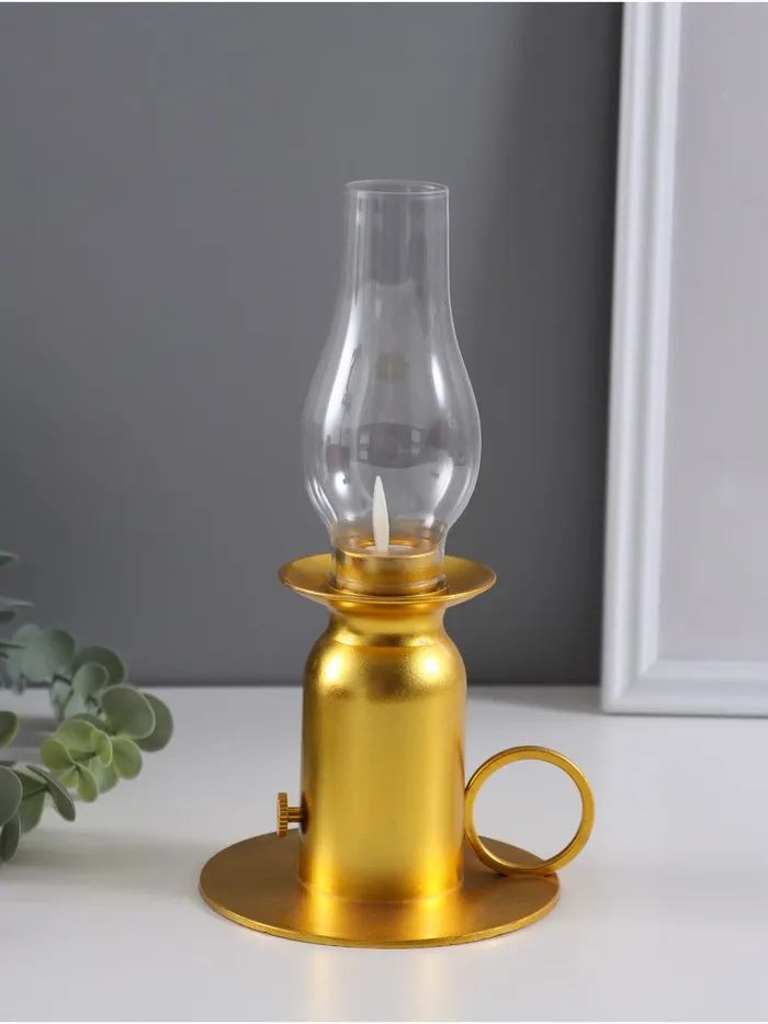 Фигурка светящаяся RISALUX «Лампа», LED 3xLR44, с эффектом живого пламени, золото, 11×11×22 см