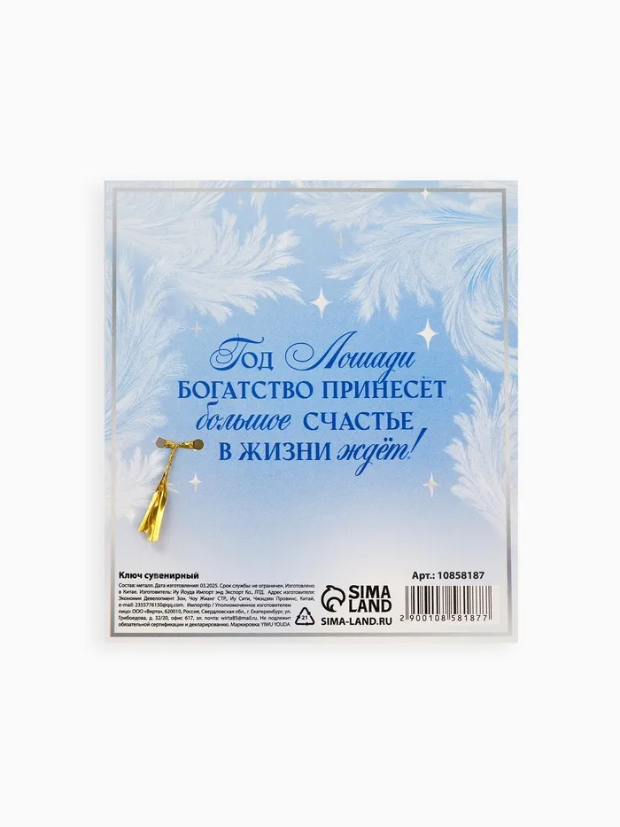Ключ сувенирный новогодний «Год лошади подарит процветание» — Характеристики