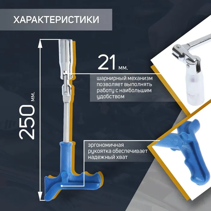 Ключ свечной ТУНДРА, с карданным шарниром, 21×250 мм — Характеристики