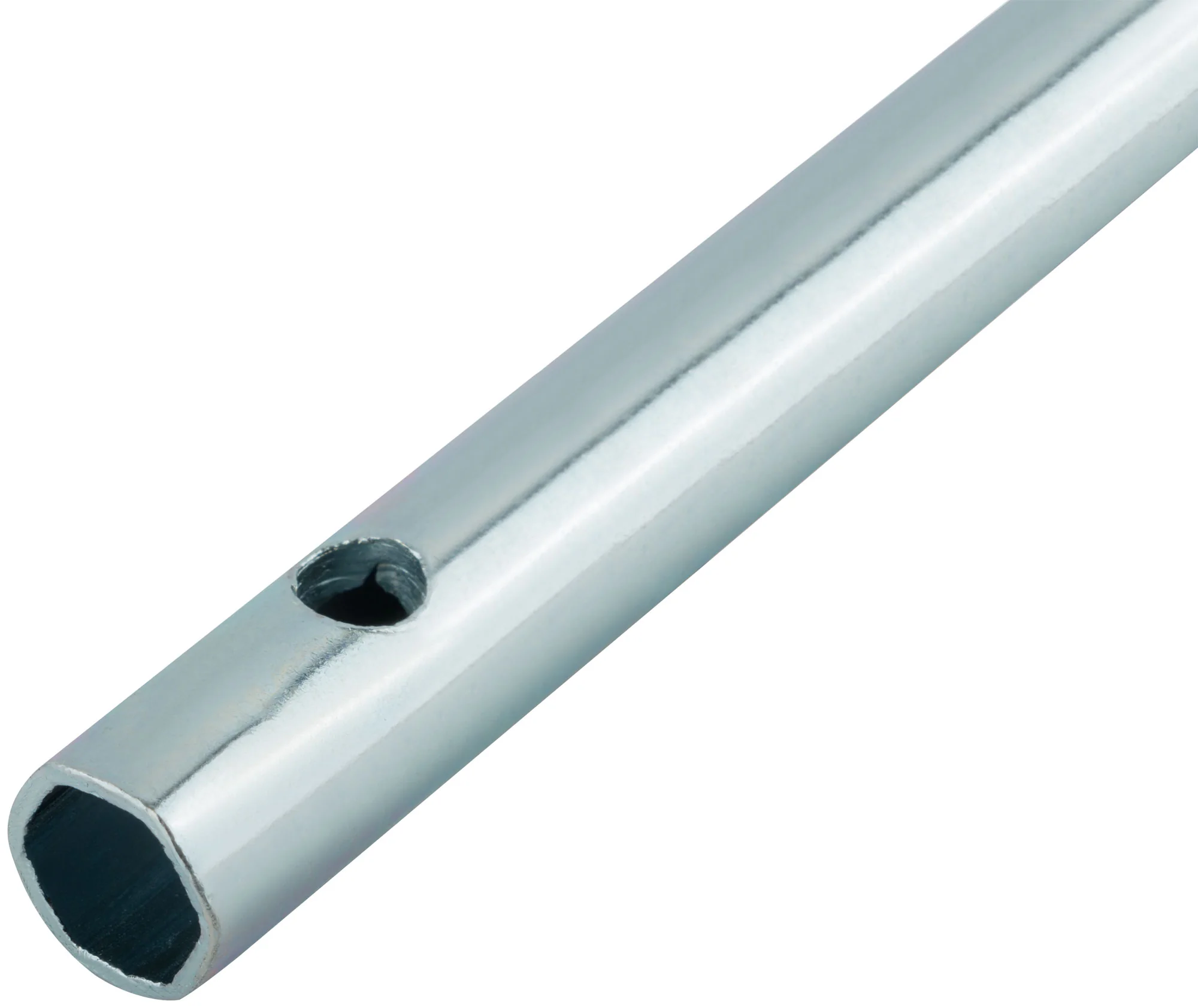 Ключ изготовлен из высококачественной инструментальной стали, что обеспечивает долговечность и устойчивость к деформациям. Длина в 120 мм позволяет использовать его в ограниченном пространстве, а двухсторонняя конструкция обеспечивает гибкость в работе с разными типоразмерами.
