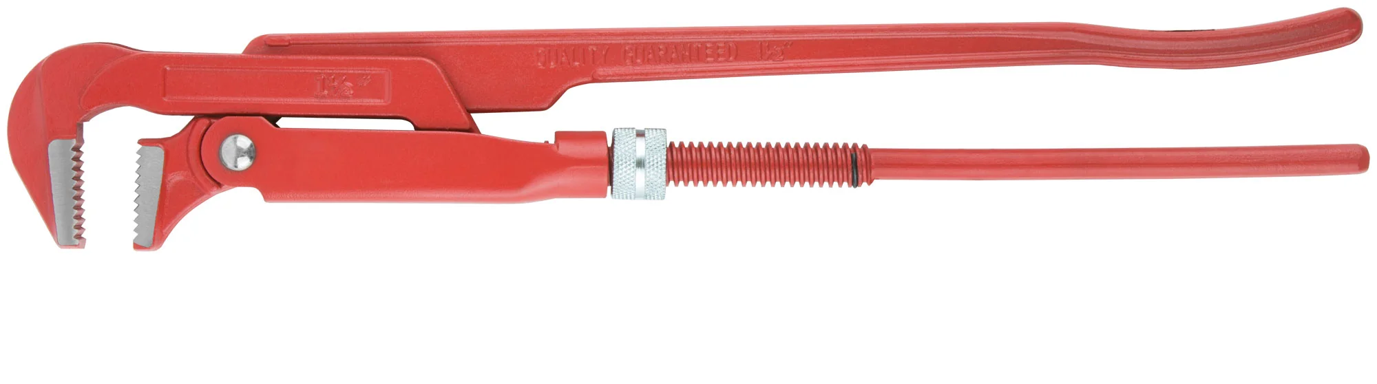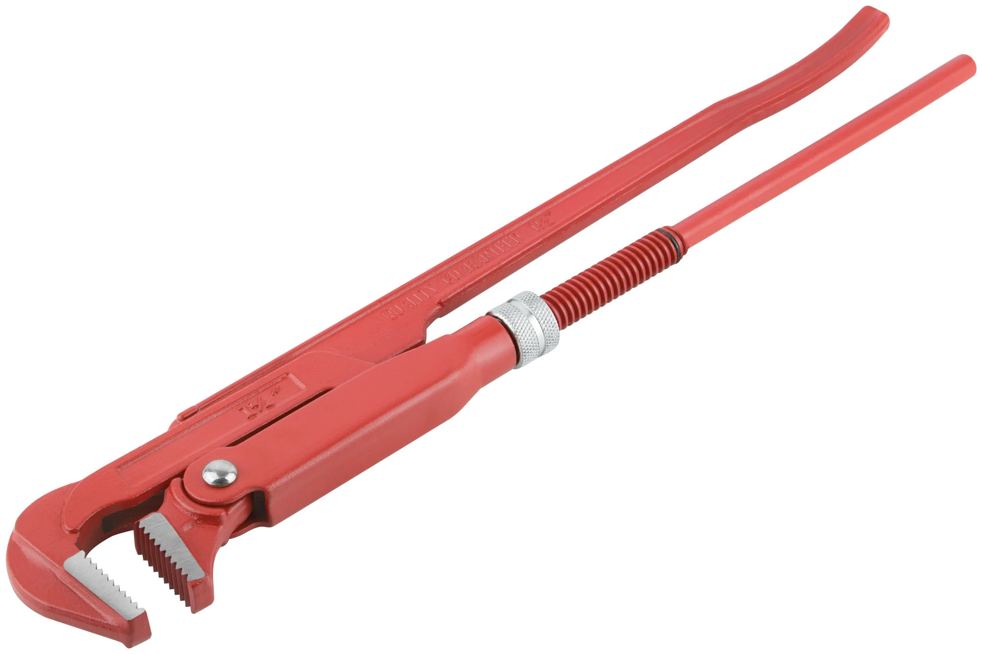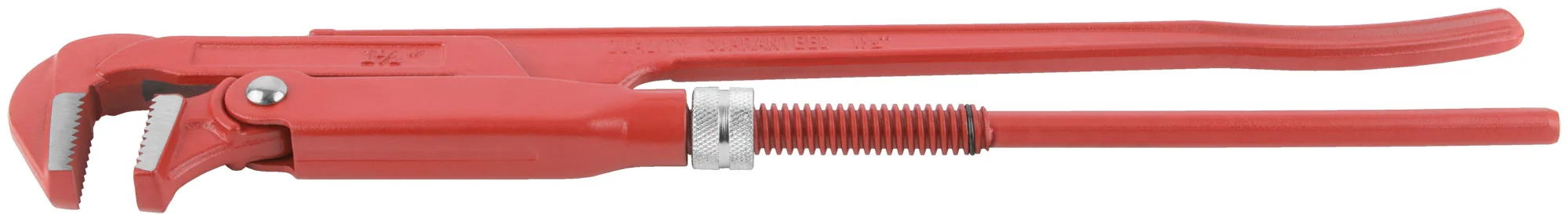 Ключ изготовлен из качественной инструментальной стали, что обеспечивает длительный срок службы и высокую надежность при выполнении работ с трубами. Шлифованные губки гарантируют крепкий и надежный захват, не повреждая поверхность трубы.
