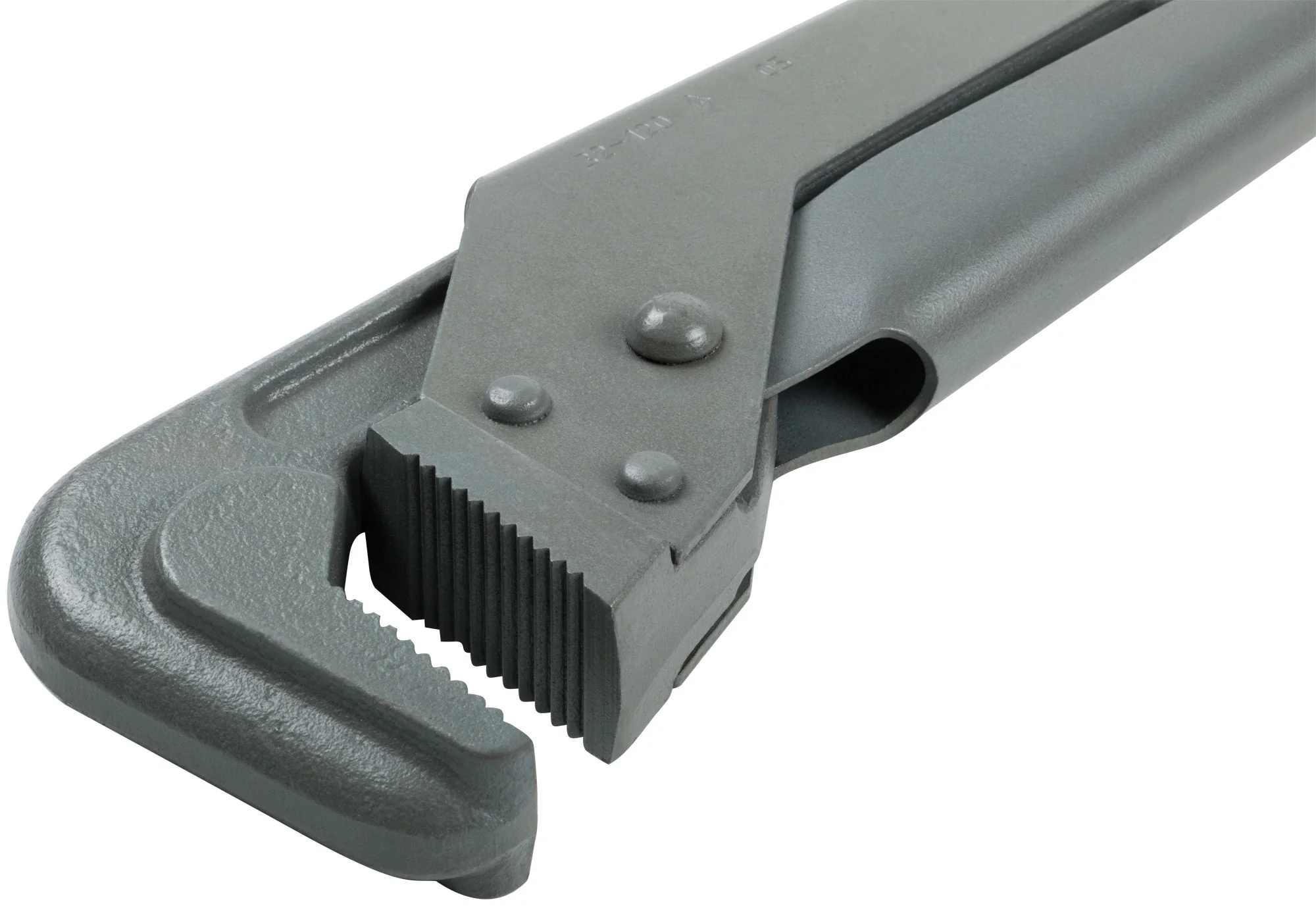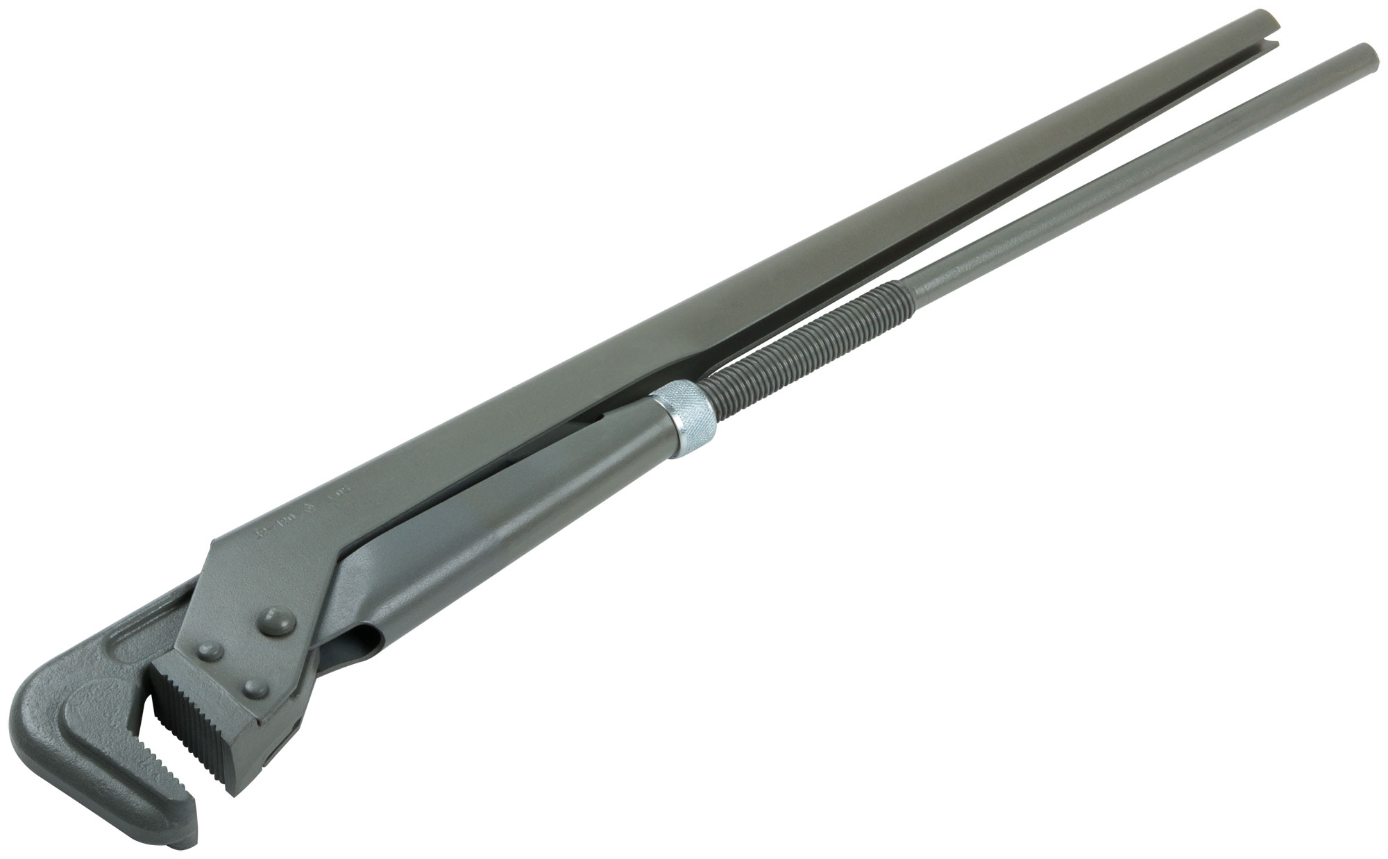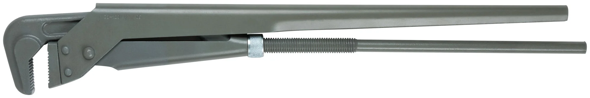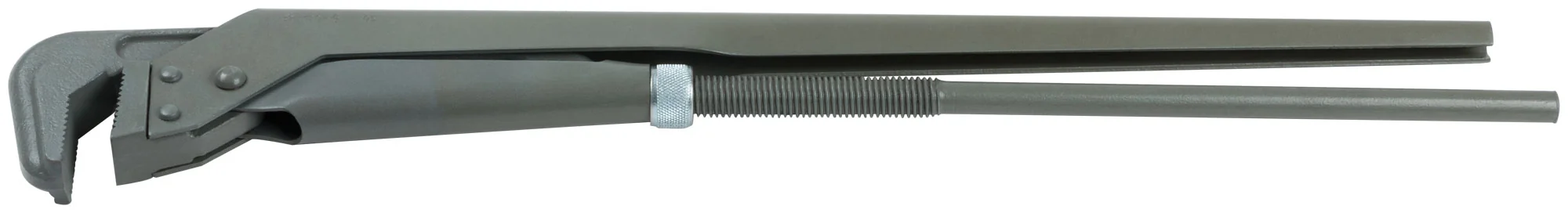 Ключ оснащен специальной конструкцией захвата с углом 90°, что позволяет быстро и эффективно фиксировать трубу. Изготовленный из высококачественных материалов, он гарантирует долговечность и надежность при интенсивном использовании. Размеры ключа составляют 800x120x40 мм, а вес — 5.44 кг, что делает его удобным в использовании.