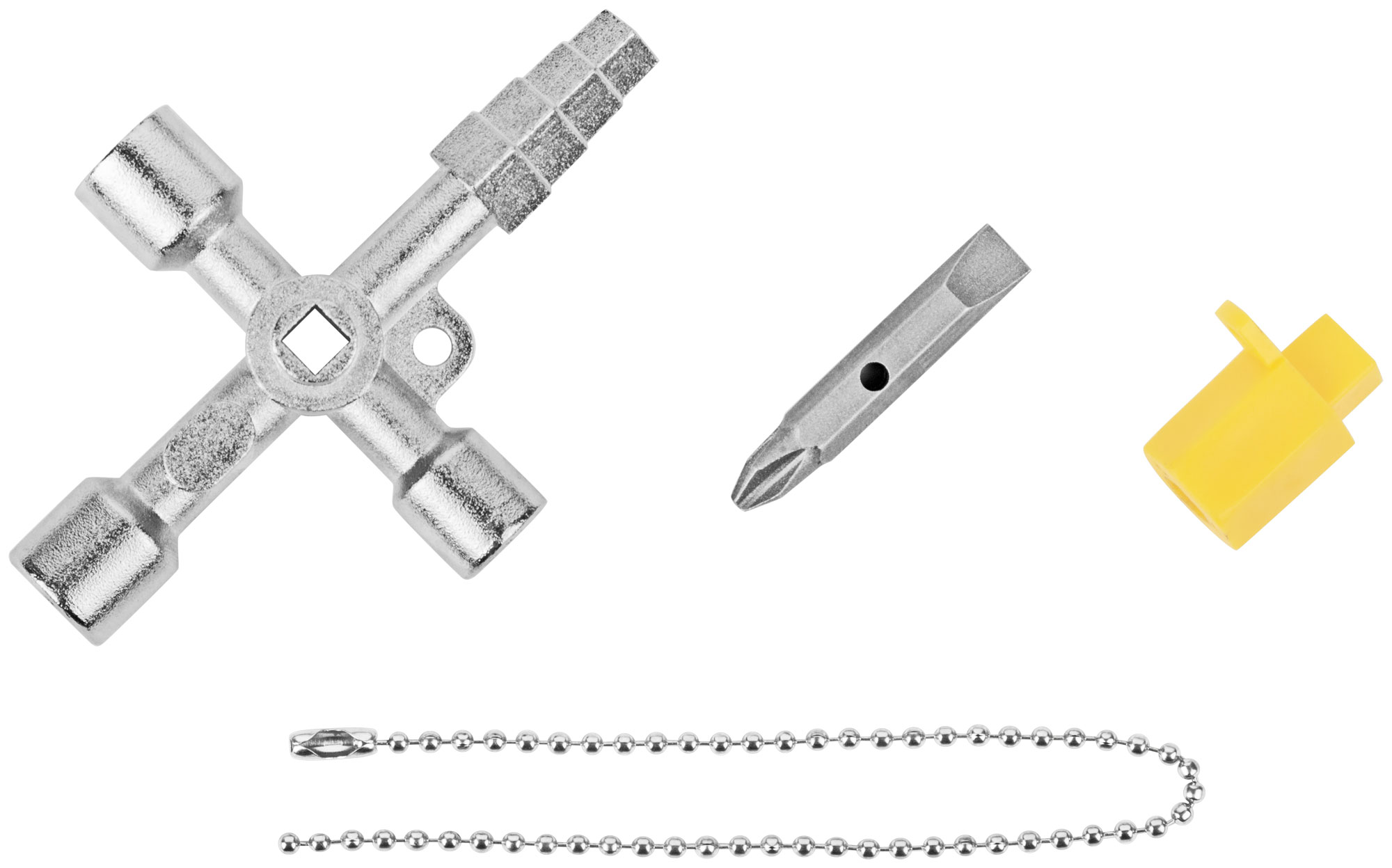 Незаменимый инструмент для электриков и монтажников, ключ FIT 5-в-1 позволяет быстро и удобно открывать электрические и сантехнические шкафы. Он пригодится в коммуникациях зданий и транспорта, а также в системах рециркуляции воздуха.