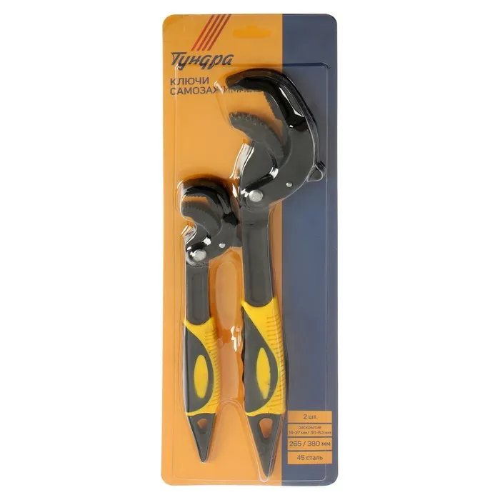 Ключи самозажимные ТУНДРА, 45 сталь, раскрытие 14 - 27 мм, 30 - 63 мм, 265 и 380 мм, 2 шт. — Характеристики
