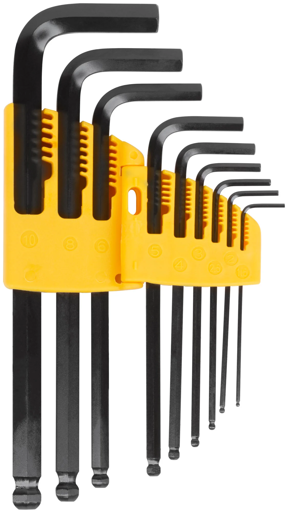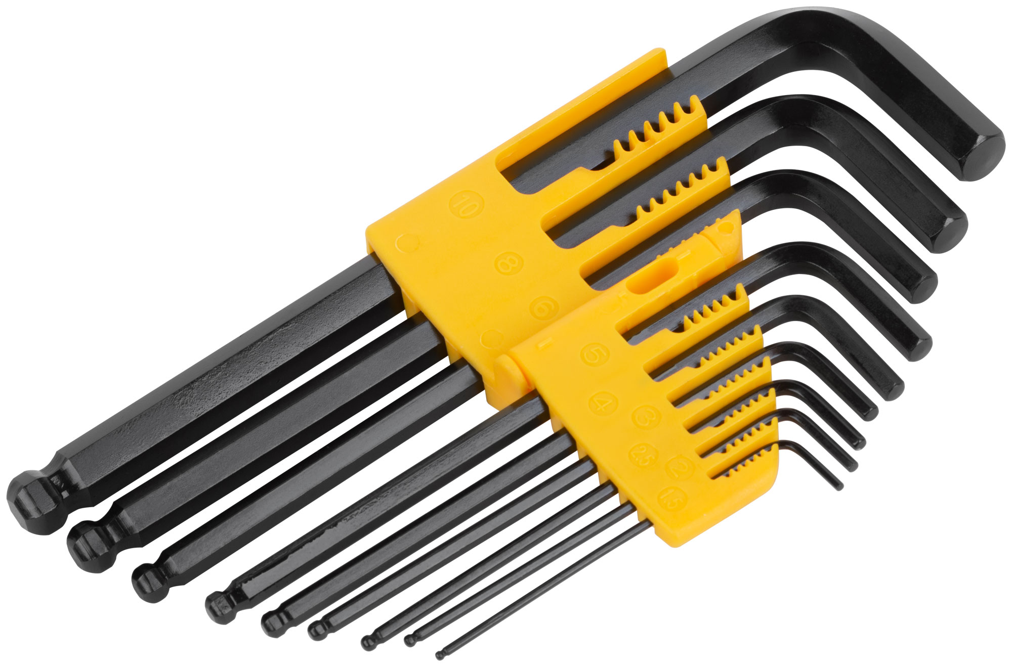 Ключи шестигранные HEX с шаром CrV 9 шт. для труднодоступных мест